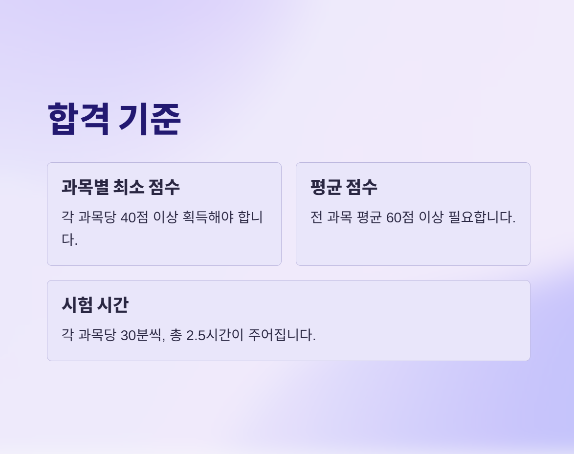 📌 Action Tip: 과목별로 약점을 파악하고, 기출문제를 반복적으로 풀어 실전 감각을 익히세요.